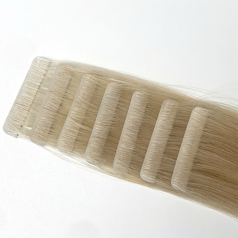 Natürliches Aussehen: Die dünnen Klebebänder, die bei dieser Methode verwendet werden, sind nahezu nicht nachweisbar und mischen sich nahtlos mit dem natürlichen Haar, wodurch ein natürlicheres und realistischeres Aussehen entsteht.
